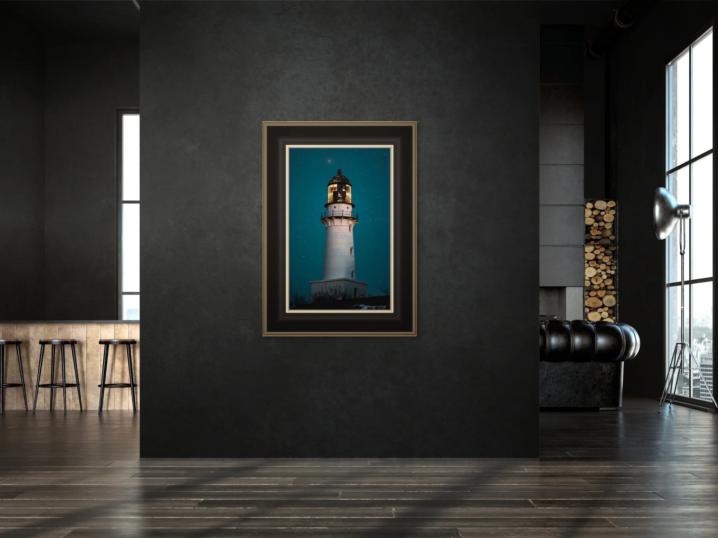 In this dark and desolate scene, there is no easy comfort, no simple answers, only the unending struggle to find meaning in a world that offers none. The lighthouse, like the human soul, stands alone against the night, its light a fragile assertion of hope in the face of overwhelming darkness.